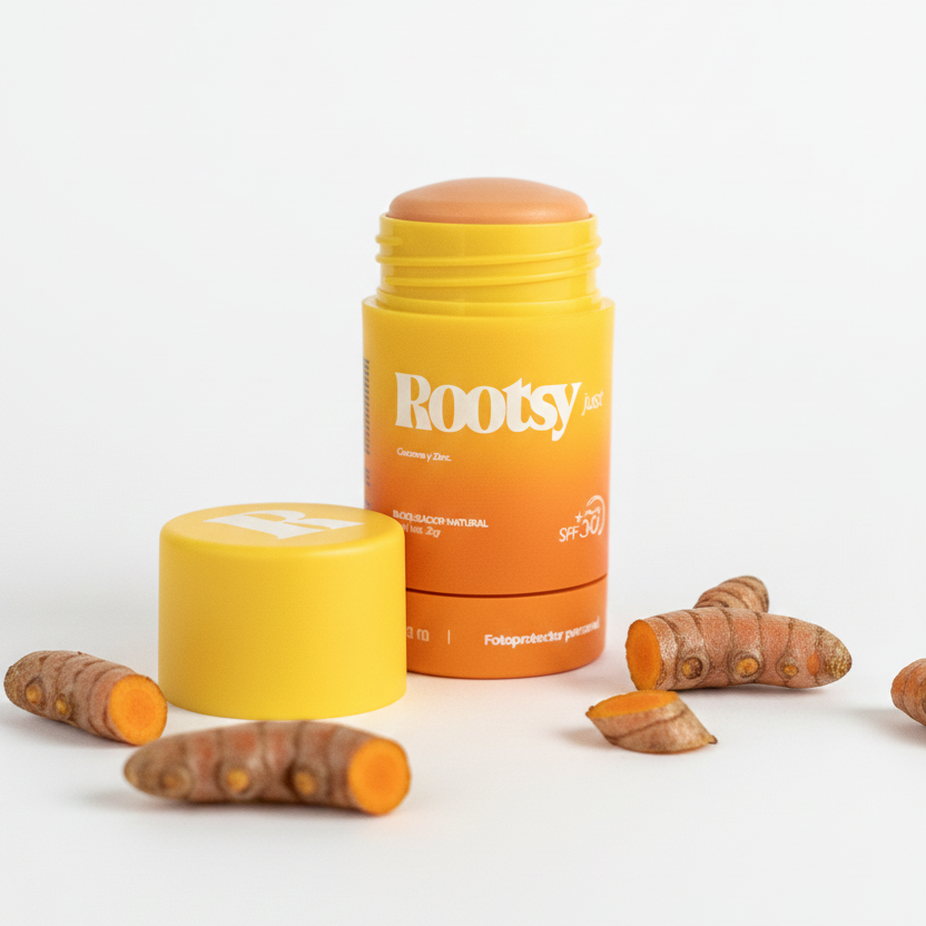 Protección de amplio espectro contra los rayos UVA y UVB gracias al óxido de zinc, con propiedades antiinflamatorias y antioxidantes aportadas por la cúrcuma.